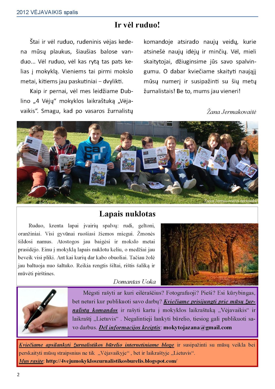 2012 m. spalio 3 d. laikraštyje "Lietuvis" nr. 35 (359) p.10